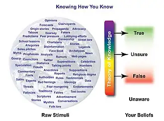 Intellectual honesty is honesty in the acquisition, analysis, and transmission of ideas. A person is being intellectually honest when they, knowing the truth, state that truth.[1] Intellectual honesty pertains to any communication intended to inform or persuade. This includes all forms of scholarship, consequential conversations such as dialogue, debate, negotiations, product and service descriptions, various forms of persuasion, and public communications such as announcements, speeches, lectures, instruction, presentations, publications, declarations, briefings, news releases, policy statements, reports, religious instructions, social media posts, and journalism. It encompasses not only written and spoken prose, but also visual aids such as graphs, photographs, diagrams, and other expressive mediums.[2]
