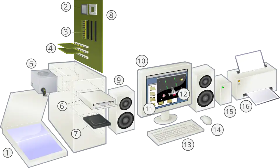 | 7 | Hard disk drive (HDD) | 16 | Printer |