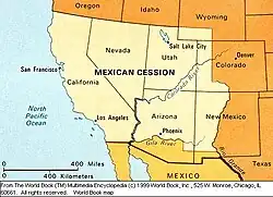 As the result of the Mexican-American war, Mexico had to give up most of the Mexican Territory in the southwest (half of their country!). This included present day California, Nevada, Utah, parts of Arizona, New Mexico, Colorado, and Wyoming. This land was called the Mexican Cession and in return for the land, Mexico was given 15 million dollars. During this period, James K. Polk was the president.
