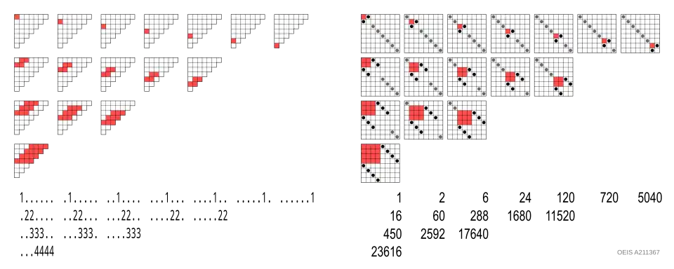 For an -element permutation the number of potential elements is the triangular number .