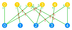 A crucial point of the article is illustrated by the images on the right: A bilayer graph that does not describe a map corresponds to a map that has the edges (green) as its domain and one layer of the vertices (blue) as its codomain. The number of crossings in the bilayer graph can be calculated as the number of inversions of the map.