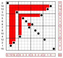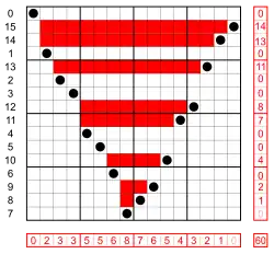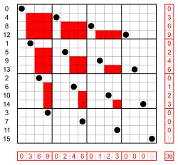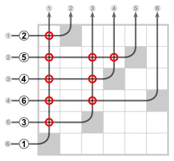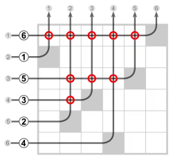 which is a permutation matrix with the 1s represented by dots, and an inversion in every position that has a dot to the right and below it.