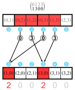This table also allows to sort by the inversion sets. The column to the left of the images brings them in lex order, the right one in colex order. p-blex = llexe-blex = ulexp-bcolex = (0, 1, 3, 2, 4, 5, 9...) = A211363(0..23)