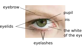 - 눈썹 (-sseob, "eyebrows"), 속눈썹 (sog-nunsseob, "eyelash")