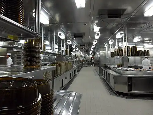 Galley (kitchen). The left is of a cruise ship, and the right of the Royal Navy during World War II.