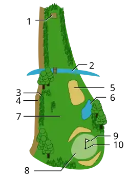 late 14c., "profound depth," from Old French golf "a gulf, whirlpool," from Italian golfo "a gulf, a bay," from Late Latin colfos, from Greek kolpos "bay, gulf of the sea," earlier "trough between waves, fold of a loose garment," originally "bosom," the common notion being "curved shape."