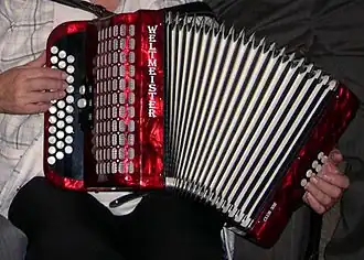 The bellows is the most recognizable part of the instrument, and the primary means of articulation. The production of sound in an accordion is in direct proportion to the motion of the bellows by the player. In a sense, the role of the bellows can be compared to the role of moving a violin's bow on bowed strings. For a more direct analogy, the bellows can be compared to the role of breathing for a singer.