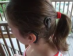 A cochlear implant is a piece of medical technology that restores and/or improves hearing and speech ability in deaf individuals. Approximately 199,000 people worldwide have a cochlear implant[1]. The implant consists of a portion embedded in the skull and a portion worn exterior on the side of the head. The internal portion of the implant comprises a receiver and a transmission coil. The external portion includes a microphone, radio transmitter and speech processor.[2]