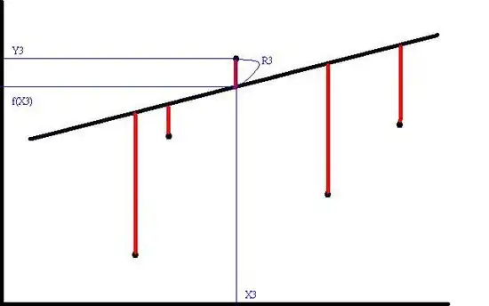 For example, in the right graph, R3 = Y3 - f(X3), and , the sum of the square of each red line's length, is what we want to minimize.