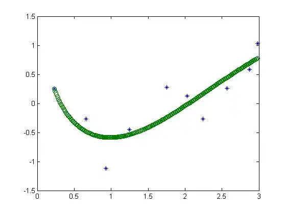 The blue spots are the data, the green spots are the estimated nonpolynomial function.