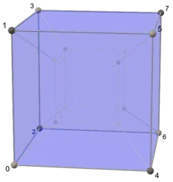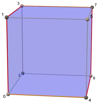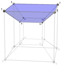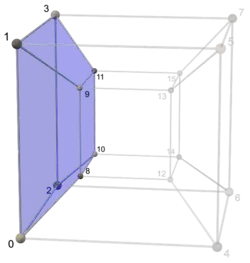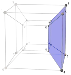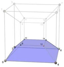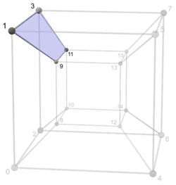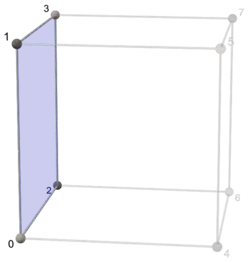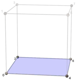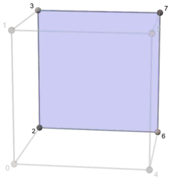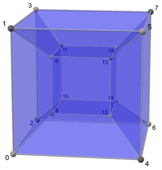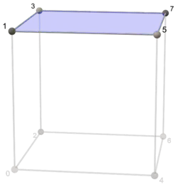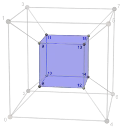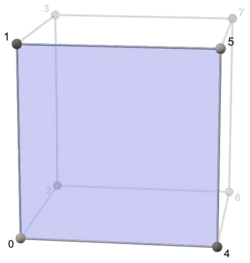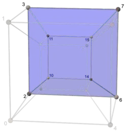 The following lists show the vertices of the tesseracts k-faces for k in {3, 2, 1}.