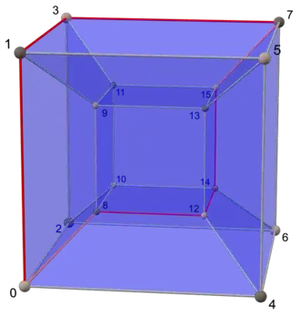 (The tesseract is the 4-dimensional hypercube, and has 8 cubic cells, 24 square faces, 32 edges and 16 vertices.)