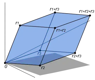 In case , the determinant is in tight relation to volumes of geometric objects. If we consider in vectors , then they span a parallelotope. This is defined by