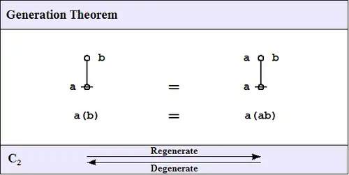One theorem of frequent use goes under the nickname of the weed and seed theorem (WAST). The proof is just an exercise in mathematical induction, once a suitable basis is laid down, and it will be left as an exercise for the reader. What the WAST says is that a label can be freely distributed or freely erased anywhere in a subtree whose root is labeled with that label. The second in our list of frequently used theorems is in fact the base case of this weed and seed theorem. In LOF, it goes by the names of Consequence 2 or Generation.