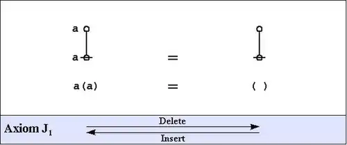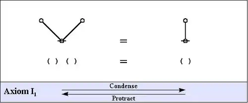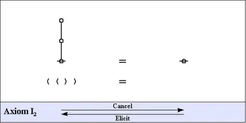 The next order of business is to give the exact forms of the axioms that are used in the following more formal development, devolving from Peirce's various systems of logical graphs via Spencer-Brown's Laws of Form (LOF). In formal proofs, a variation of the annotation scheme from LOF will be used to mark each step of the proof according to which axiom, or initial, is being invoked to justify the corresponding step of syntactic transformation, whether it applies to graphs or to strings.