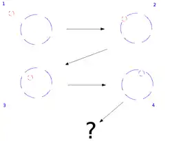 So, what can happen after situation 3 ? This is completely in our hands. In most projects very likely the vandal is being "fought" and is "brought" back to a previous state (and the game can continue again from that state). The more effort-taking way is to help the circle understand and realize what Wikiversity is about and ultimately making the circle contribute also to Wikiversity's mission.