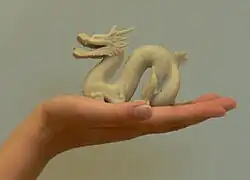 While capturing a physical version of the Stanford dragon (archived by rapid prototyping) with a single 640x480 fire-wire camera in a controlled light situation an OpenGL Rendering-Engine generates a whole bunch of images with possible locations of the dragon.