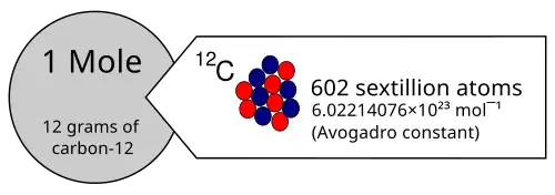 The atomic mass is our primary concern here. By definition, a mole (symbolized as mol) is the quantitative amount of any given substance that contains as many atoms, molecules, or formula units as the number of atoms in exactly 12 g of carbon-12. This number is known as Avogadro's number (usually symbolized as NA), and has recently been given the value of 6.0221367 × 1023.