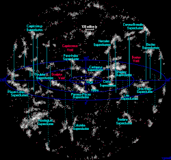 Our universe within 1 billion light-years (307 Mpc) of Earth is shown to contain the local superclusters, galaxy filaments and voids. Credit: Richard Powell.
