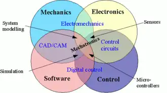 Mechatronics Engineering is the trade that combines methodologies, techniques and applications from Electrical Engineering, Electronic Engineering, Mechanical Engineering, Automatic Control and Computer Science, hence the prefix "Mecha"; stands for Mechanics involved engineering, and "tronics"; stands for the Electronics/Computer Science involved engineering: Mechatronics.