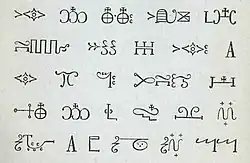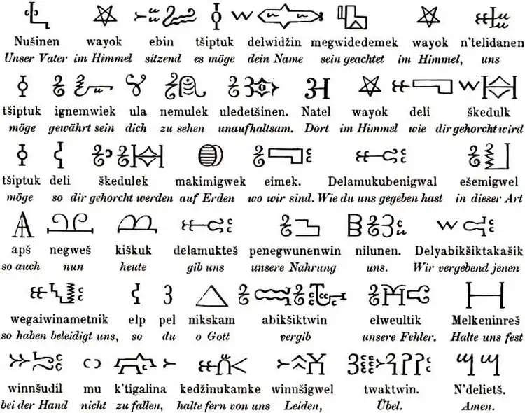 Nowadays, Mi'kmaq language is written with the Latin alphabet. However, a Mi'kmaq hieroglyph writing system, called komqwejwi'kasikl in Mi'kmaq, has been used in the past. Those hieroglyphs are partially from Native creation, making Mi'kmaq one of the few American languages to have a writing system pre-contact with the Europeans. However, those hieroglyphs were more pictographs used as visual memory aids than a real writing system.