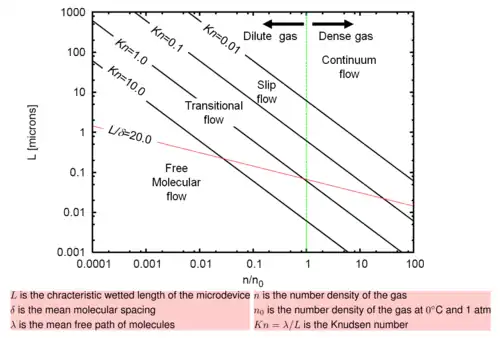 The regimes of gas flow defined based on the observed rarefaction effects, amongst others the slip effect, are as follows:[2]: