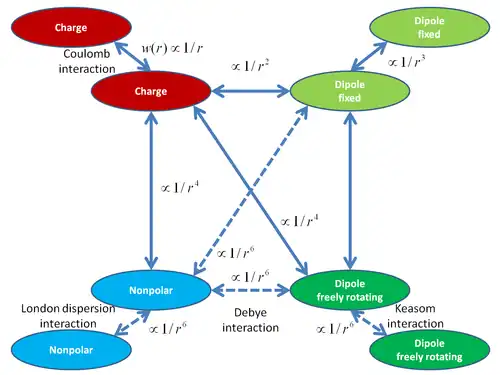 All molecules are either charged (i.e. ions), polar, or non-polar (which are polarizable). When the thermal energies of the molecules are more than the orientation dependencies of dipole-dipole and ion-dipole interaction energies, the molecules are not fully aligned and they rotate freely. The intermolecular interactions which are responsible for physical bonding are: