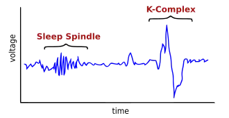 Stages of sleep![]() Sleep in humans has been classified into 2 main categories, Non Rapid Eye Movement (NREM) sleep and Rapid Eye Movement (REM) sleep. NREM can be further broken down to four sub-stages from stages 1 to 4. In humans, sleep patterns cycle through REM sleep and the four stages of NREM sleep around every 90 minutes (See Figure 2). This cycle remains fairly consistent throughout the night, however NREM stages 3 and 4 will be prominent earlier in the night and NREM stages 1 and 2, and REM sleep will be more prevalent in the latter part of the night (Walker & Van Der Helm, 2009). ![]() Sleep patterns are usually measured by the use of an electroencephalogram (EEG). EEG requires the use of electrodes being placed on an individual’s head, where brain activity can be measured. When an individual is awake 2 patterns of activity usually occur: alpha activity and beta activity. Alpha activity consists of activity of 8-12 Hz asssociated with rest and relaxation. Beta activity is activity of 13-30 Hz and is associated with individual's arousal and high mental activity (Vassalli & Dijk, 2009). When NREM stage 1 sleep begins and EEG activity starts to show the presence of theta activity which has EEG activity of 3.5-7.5 Hz (See Figure 3). This stage is the transition from being awake and the beginning of sleep (Vassalli & Dijk, 2009). ![]() Stage 2 of NREM sleep shows theta activity, sleep spindles and K complexes (See Figure 4). Sleep spindles are short burst of waves of 12-14 Hz that occur about every 2 to 5 minutes during stages 1-4 NREM sleep. Sleep spindles have been theorised to be the mechanism involved in keeping an individual asleep. K complexes are sudden short waveforms which are only found in stage 2 of NREM sleep. K complexes are said to be the precursor of delta activity seen in stages 3 and 4 of NREM sleep. Stages 1 and 2 of NREM sleep have been less focused on and sleep deprivation does not differ much in these stages (Vassalli & Dijk, 2009). ![]() Stage 3 NREM sleep is made up of 20%-50% of delta activity and Stage 4 is made up more than 50% of delta activity. Stages 3 and 4 are also referred to as Slow Wave Sleep (SWS). Delta activity are high amplitude waves that are slower than 3.5 Hz (See Figure 5). Stage 4 is our deepest level of sleep and if awoken in this stage we tend to act confused and hazy (Vassalli & Dijk, 2009). ![]() REM sleep is a period of desynchronised sleep where theta activity occurs in combination with very high frequency of gamma activity which occurs at 30-80 Hz (See Figure 6). In REM sleep our bodies are paralysed while at the same time our brain is very highly active. If someone wakes up during REM sleep they are highly likely to recall what dreams were occurring and they will appear alert and active (Walker, 2009). REM vs. NREM sleepThroughout the changes of NREM and REM sleep alterations occur in neurochemistry. In NREM sleep subcortical cholinergic systems in the forebrain and brain stem become less active. Serotonergic Raphe neurons and noradrenergic locus coeruleus neuron are also reduced when comparing to levels when awake. In REM sleep aminergic systems are inhibited while cholinergic systems become more active even compared to levels when awake. This results in the brain being in a main state of being dominated by acetylcholine and deficient of aminergic modulation (Walker & Van Der Helm, 2009). Different patterns of functioning also occur between NREM and REM sleep. In NREM SWS sleep the basal ganglia, brain stem, thalamic, prefrontal and temporal lobe region show significantly reduced activity. In REM sleep the parietal cortex, prefrontal cortex and posterior cingulate show to be least active. While regions that show significant increase in activity in REM sleep include pontine tegmentum, the occipital cortex, the thalamic nuclei and the mediobasal prefrontal lobes. REM sleep also affects regions related to affect such as the hippocampus, amygdala and the anterior cingulated cortex (Walker & Van Der Helm, 2009). Optimal sleep![]() People vary with how much they sleep. The average person needs 7.5-8 hours sleep per night, however some people function well on 4-5 hours, and others may need 9-10 hours. The severity of the effects of sleep amount and quality one gets, is dependent on how well we can function with our daily tasks and responsibilities throughout the day. Good sleepers take usually less than 30 minutes to fall asleep and may wake up between once or twice a night (Centre for Clinical Interventions (CCI), 2011a). Adequate sleep is an essential part of healthy human functioning and on the 75 trillion cells that the body comprises of. Optimal sleep patterns require the alternation of NREM sleep which comprises of about 75% of total sleep and REM sleep which comprises of about 25% which usually last for about 5 to 30min each 90 minute cycle. These sleep patterns are shown to be important in consolidation of memory processing, learning new tasks and brain restoration(Meletis & Zabriskie, 2008). Such like the 90 minute cycles that are important in our sleep, humans also have a daily rhythm in behavior and physiological processes called circadian rhythms. In humans these rhythms are controlled by mechanisms labeled as our internal clocks which cycle approximately every 24-25 hours (See Figure 7). Zeitgeber is a stimulus that resets our internal clock and in humans this is usually light from the rising of the sun. The benefits from modern technology and the use of artificial lighting and shading, allows us to delay our bedtime and waking time. This is important to optimal sleep as it recognizes the importance of a daily sleeping pattern (Carlson, 2005). Dreaming![]() Dreaming occurs in both NREM and REM sleep, however recollection of dreams are more readily accessible when woken in REM sleep. Sigmund Freud, renowned psychoanalysist, proposed that dreaming occurred out of one’s inner conflict between our unconscious desires and pr