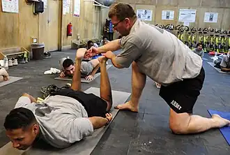 Yoga is the practice of spiritual, mental and physical exercises aimed at the attainment of permanent enlightenment and tranquility. The practice of Hatha yoga that is by far the most common in the west involves the completion of a series of low impact poses and breathing exercises that are aimed at building physical strength, balance and flexibility. Template:It would be nice to name some of the yoga postures here, and include their Sanskrit names, such as 'Downward Dog Pose'- 'Adho mukha Svanasana' and 'Headstand' or 'Shirshasana' in Sanskrit. These exercises are completed with an emphasis on relaxation, focus and mindfulness, and are often used as an accompaniment to meditation. Yoga can be practiced alone or in a group and for as short or as long periods as desired, however longer and more intensive sessions are generally considered to be most beneficial (Kuttner et al., 2006). In addition to physical benefits, yoga aims to improve general well-being by teaching self-regulation and discipline (Walsh, 1983)