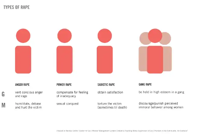 Groth and colleagues suggested that power and anger are the dominant motivations in rape, and rape has little to do with sex and lust (Jamel, 2014). Groth theoretically defined rape as “sexual behaviour in the primary service of nonsexual needs” and proposed a modified definition of sexual deviance as “sexuality (used) to express needs or wishes that are not primarily sexual in nature and that jeopardise the physical or psychological safety of others” (Hegeman & Meikle, 1980, p. 361).