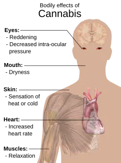 Cannabis, more commonly known as ‘marijuana’, is a psychoactive drug derived from the leaves of the Cannabis plant (Guy, Whittle, & Robson, 2004). The plant's leaves are composed of 483 substances, including Tetrahydrocannabinol (THC), the principle cannabinoid that gives the drug its psychoactive properties (Russo, 2013). It’s commonly consumed through smoking ‘joints’, hand-made rolled up cigarettes containing ground up cannabis leaves, or a bong (Hall, 2014). However, it can also be used in and consumed through food, drinks, oils, and vaporization (Russo, 2013; Crippa et al., 2009).
