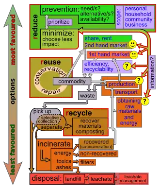 - Zen et al. (2014) described a 'pyramid' hierarchy, with government policies (the most critical) at the top, followed by the availability of recyclable materials (like packaging), then the individual. The components of this system were thought to influence each other.