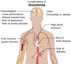 | Insomnia | Difficulty initiating sleep, maintaining sleep or frequent awakenings |