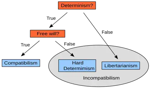 Compatibilism is the idea that free will and determinism are compatible, rather than opposing, ideas (Turri, 2017). Within compatibilism there are several varying conceptions by theorists, who each propose slightly different arguments. A key compatibilist was Harry Frankfurt who made a semantic argument and used hypothetical situations to show that a person can still exercise free will even where they had no other choice. Patricia Churchland, on the other hand, suggests that asking 'do I have free will?' is the wrong question to be asking.