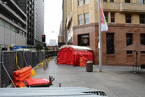Figure 8. The Sydney Lindt Cafe in Martin Place 2 days after the terrorist attack