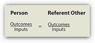 This can be represented as a ratio in which one person's outcomes are weighed by their inputs and assessed against another. Inputs are the contributions an individual may feel that have added to an environment with outcomes being the perceived rewards as compensation or other favourable outcomes. This is compared to another in the same environmental situation with a subjective view of their inputs and outcomes which may be perceived as fair if the ratio is equal.