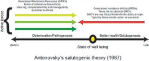 Sense of coherence is a key concept of the salutogenic theory which describes a state of health on a continuum rather than either ease or disease as shown in figure 1. Antonovsky was curious as to why some people stay well even when in the midst of adversity and extremely situations and why some do not (Eriksson & Lindstrom, 2007). He explored this question and was able to come up with the sense of coherence, a stable trait that influences how a person sees the world. Using a systems theory of thinking, Antonovsky (1987) made two major observations in the way he saw the world the first being that he noticed people interacting with their environment and secondly that phenomena like chaos and change are very normal parts of life. These observations formed the basis for much of this theory.