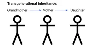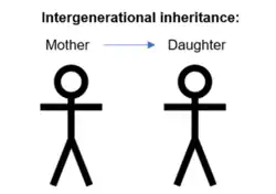 - Intergenerational inheritance involves an environmental stimulus leading to an epigenetic alteration in the parent and, most likely, the offspring of that parent (see Figure 1) (Tuscher & Day, 2019)