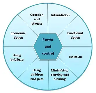 The Power and Control Wheel (see Figure 2), created and utilised by the Domestic Abuse Intervention Project, can assist in providing an understanding of the abusive behaviours associated with maintaining control. The power and control wheel is used as an explanation of the tactics used by men against women in particular, and shows the power imbalances in relationships between men and women that reflect power imbalances in society (Domestic Abuse Intervention Programs, n.d.)