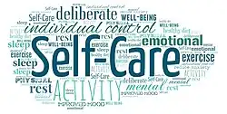 The World Health Organisation ([WHO], n.d.) has defined self-care as “the ability of individuals, families and communities to promote health, prevent disease, maintain health, and to cope with illness and disability with or without the support of a healthcare provider” Self-care is similarly defined as comparable to being aware of and attending to one's basic physiological and emotional needs daily, including the moulding of one's daily routine, relationships, and environment as needed to support self-care. Self-care with a mindful component is referred to as mindful self-care. (Cook-Cottone, 2016) Self-care is the mind-body health of an individual and helps us manage our daily anxieties and stressors. It is the action of caring for yourself so that you can keep up with the daily pace of life. Particularly in positions that can be emotionally draining, or require long arduous hours (high-stress health professions, miners, night shift work.) Though the name might seem self-explanatory self-care is so often neglected within the workplace, and lack of self-care can very quickly lead to issues such as compassion fatigue, depression, and burnout. One article so cleverly referred to this as "The Tension Between a Culture of Productivity and the Need for Self-Care" (Guest, et al., 2011)