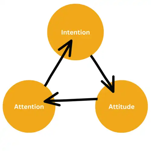 To explain pathways to understanding how mindfulness impacts positive transformation, academics have developed a model of mindfulness (Shapiro et al., 2006). Intention, attention, and attitude have been recognised as the three pillars of mindfulness by studies. We can infer how mindfulness may operate from an understanding of IAA. Intention, attention, and attitude are not distinct stages or processes; instead, they are integral parts of a single cyclic process that takes place simultaneously (Shapiro et al., 2006). According to Prof. Shapiro, mindfulness works by educating individuals to change their viewpoints away from their ideas and to focus on their moment-to-moment sensations without judgement.