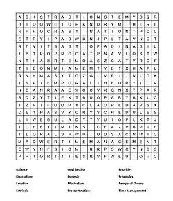 This is a find-a-word activity designed to give a break and reward for people but has incorporated in words learnt throughout the wiki page.