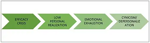The individuals highly feel doubt on their efficacy and confidence, including past failures, a lack of role model who successfully overcame similar challenges, limited reinforcement for their work, lack of feedback on completed tasks or excessive negative criticism and work related difficulties. As a result, these inefficacy expectations can diminish the job satisfaction, long-term emotional exhaustion, and as a coping mechanism, cynicism or depersonalization arises (see Figure 2).