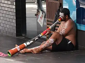 Another method used by Australian Indigenous peoples to quieten the mind and encourage wellbeing is the playing of, and listening to, the didgeridoo. Australian Aboriginal peoples are the first known culture to heal with sound, using the didgeridoo as an instrument for physical and emotional healing for both the player and the listener (Maloka, 2023, see Figure 4) by encouraging mindfulness.