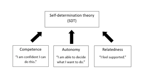 Self-determination theory (SDT) is a motivational theory that examines how social contexts and individual differences facilitate different types of motivation which, in turn, predicts learning, performance, experience, and psychological health (Deci & Ryan, 2015). According to this theory, in order for people to experience effective functioning and wellness, they need to satisfy the psychological needs of competence, autonomy, and relatedness (Deci & Ryan, 2015).