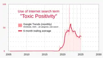 The term toxic psychology was first seen in Halberstam's (2011) work on 'the queer art of failure', however the concept had been explored already in previous psychological studies. Weinstein (1980) looked at the concept of unrealistic optimism in a study where it was found that people with unrealistic optimism believed that "success happens to good people and failure is just a consequence of a bad attitude rather than structural conditions". The people studied believed this to the extent that they would not get a serious disease simply because they had a positive attitude about life, and others who did have serious diseases brought it onto themselves from a poor attitude (Lecompte-Van Poucke, 2022). The concept of toxic positivity is beginning to become more well-known as seen in Figure 2, with research on the subject steadily becoming more popular and needed in order to understand the consequences and issues that come with it.
