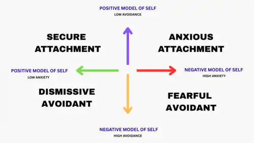 The attachment theory suggests that early caregiving forms expectations about safety, trust, and emotional expression (see Figure 4). In an emotional context, individuals with insecure or disorganised attachment histories who are exposed to inconsistent and neglectful caregiving, may have learned that displays of happiness are unsafe, in which expressions of such are ignored, invalidated, or punished (Bowlby, 1969). As such, these issues may progress into adulthood where expressing happiness may trigger anxiety rather than comfort, specifically in interpersonal contexts and relationships. Research indicates that avoidant and disorganised attachment styles are the most strongly associated with the suppression of positive emotions and difficulty of maintaining states of of positive emotions, making individuals with these attachment styles more susceptible to avoiding happiness (Mikulincer & Shaver, 2007). In a therapeutic context, exploring these attachment styles can lead to uncovering the reason behind why some individuals are averse to happiness, and can help individuals understand that experiencing happiness is safe and socially acceptable.