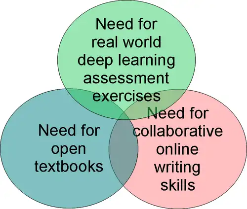 This page explores three higher education needs and underlying pedagogy for using student-developed open textbook chapters as learning and assessment exercises.