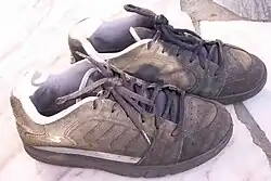 The shoes would be rather than angular, more oval shaped and be visually somewhere in between true “skater shoes” (as Globe, Osiris, ...) and regular sportshoes (eg Nike). It would be very similar to the model of “Docker” shoes seen here next to this text. This geometric shoe-design is already very tough and can endure allot of punishment due to is oval shape (eggs have this too and are herefore also very tough in relative terms). The shoes would herefore be not only more or less as tough as regular army shoes (eg Bata shoes; see http://en.wikipedia.org/wiki/Bata_Shoes) and offering the same advantages as their counterparts (protection from spines, shrubs, ...) but would be also lighter (allowing more swiftness, movability and speed). The shoes may be outfitted with ventilation designs similar to the Geox-shoes (see http://en.wikipedia.org/wiki/Geox), ...
