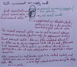 The air supply mask would also be included to the design, yet would not be worn all the time. Rather, they would be placed in a pouch or strapped to a leg or arm so that they can be used when this is required.